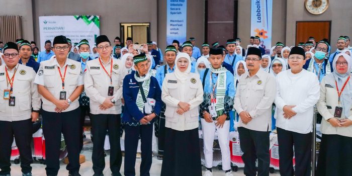 MEMORANDUM – Suasana khidmat dan haru menyelimuti Asrama Haji Surabaya saat Gubernur Jawa Timur Khofifah Indar Parawansa secara resmi melepas keberangkatan jemaah