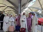 Sementara itu, para jemaah haji pria terlihat gagah dengan jubah ala Raja Salman lengkap dengan gamis panjang dan penutup kepala keffiyeh. Penampilan unik ini memang sudah menjadi tradisi bagi jemaah haji asal Sulawesi Selatan.