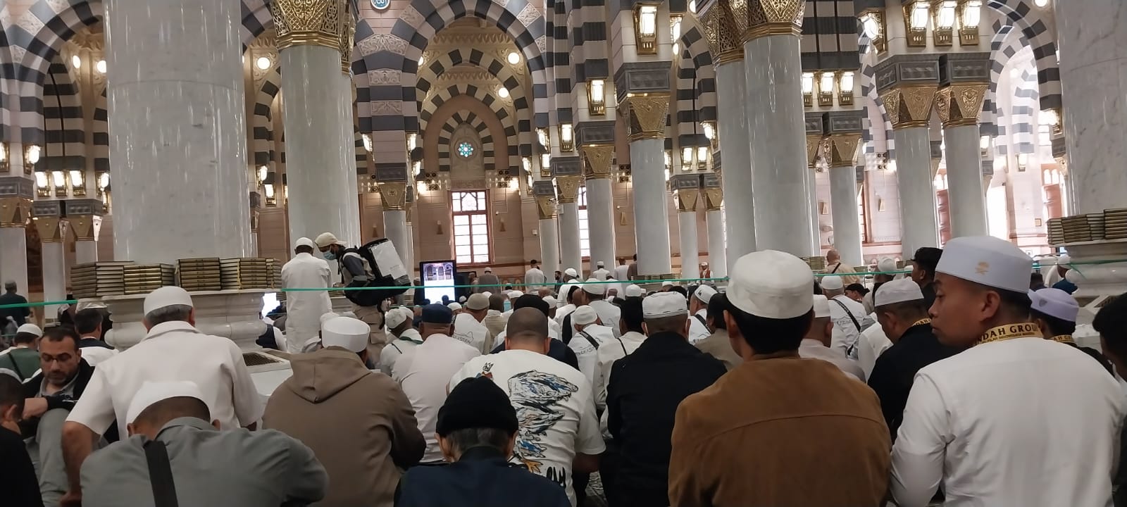 Suasana batin para jemaah seakan meledak; tangis haru tak terbendung begitu mereka menyentuh karpet hijau yang menandai area Raudhah (Taman Surga), tempat yang sangat dianjurkan untuk diziarahi di dalam Masjid Nabawi.