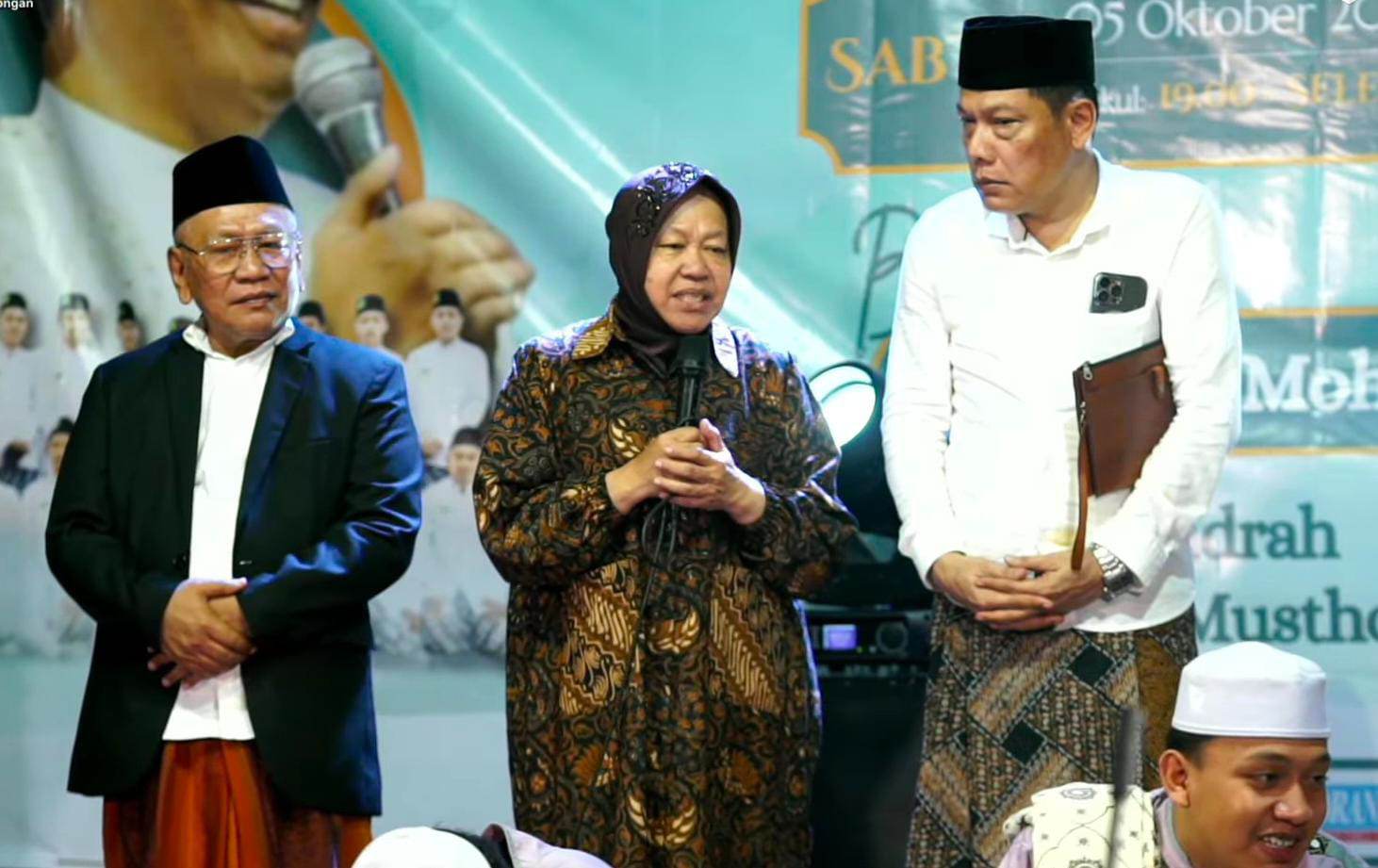 Tri Rismaharini menghadiri acara Pengajian Akbar dalam rangka memperingati Maulid Nabi Muhammad SAW yang digelar di Dusun Kepuh, Desa Margoanyar, Kecamatan Glagah, Kabupaten Lamongan..