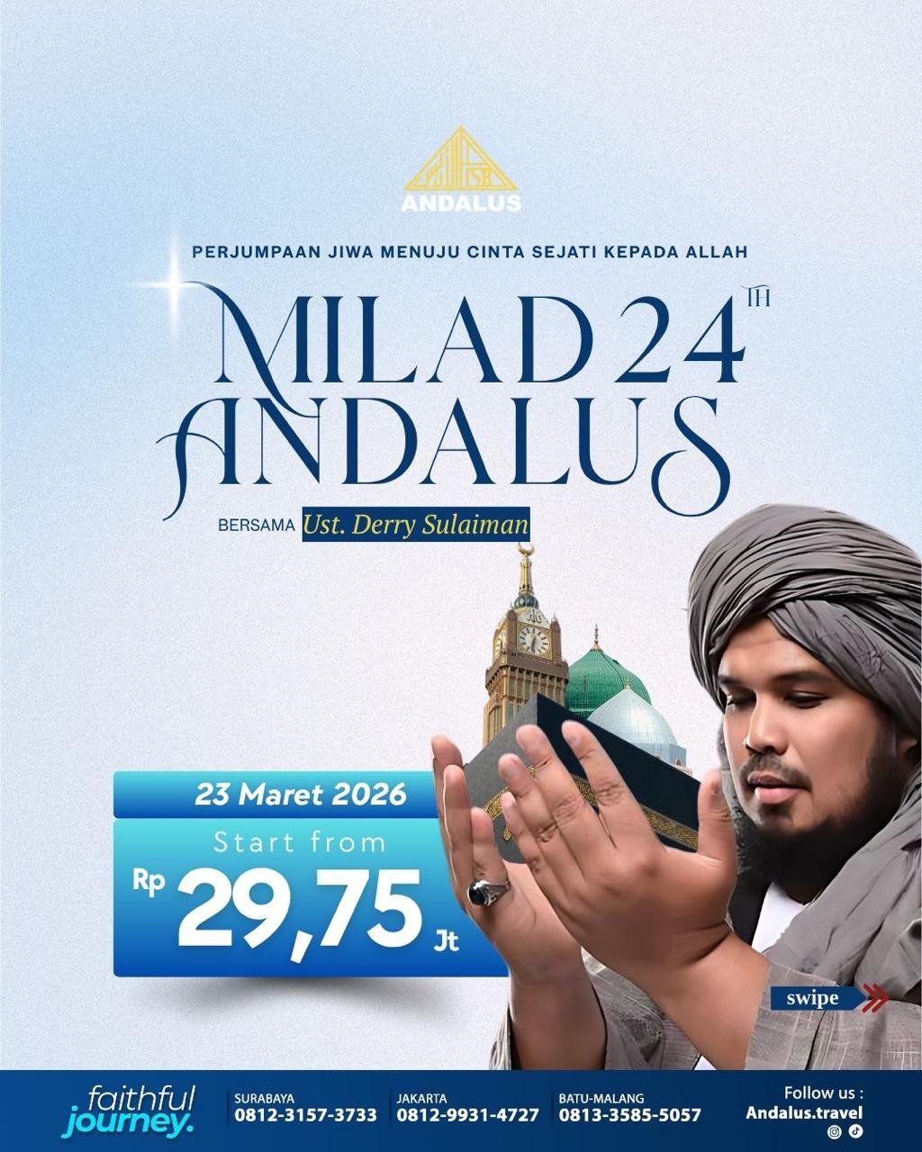 Bagi Anda yang ingin mengetahui lebih lanjut mengenai program dan promo Andalus Travel, silakan kunjungi booth kami di Royal Plaza Surabaya.