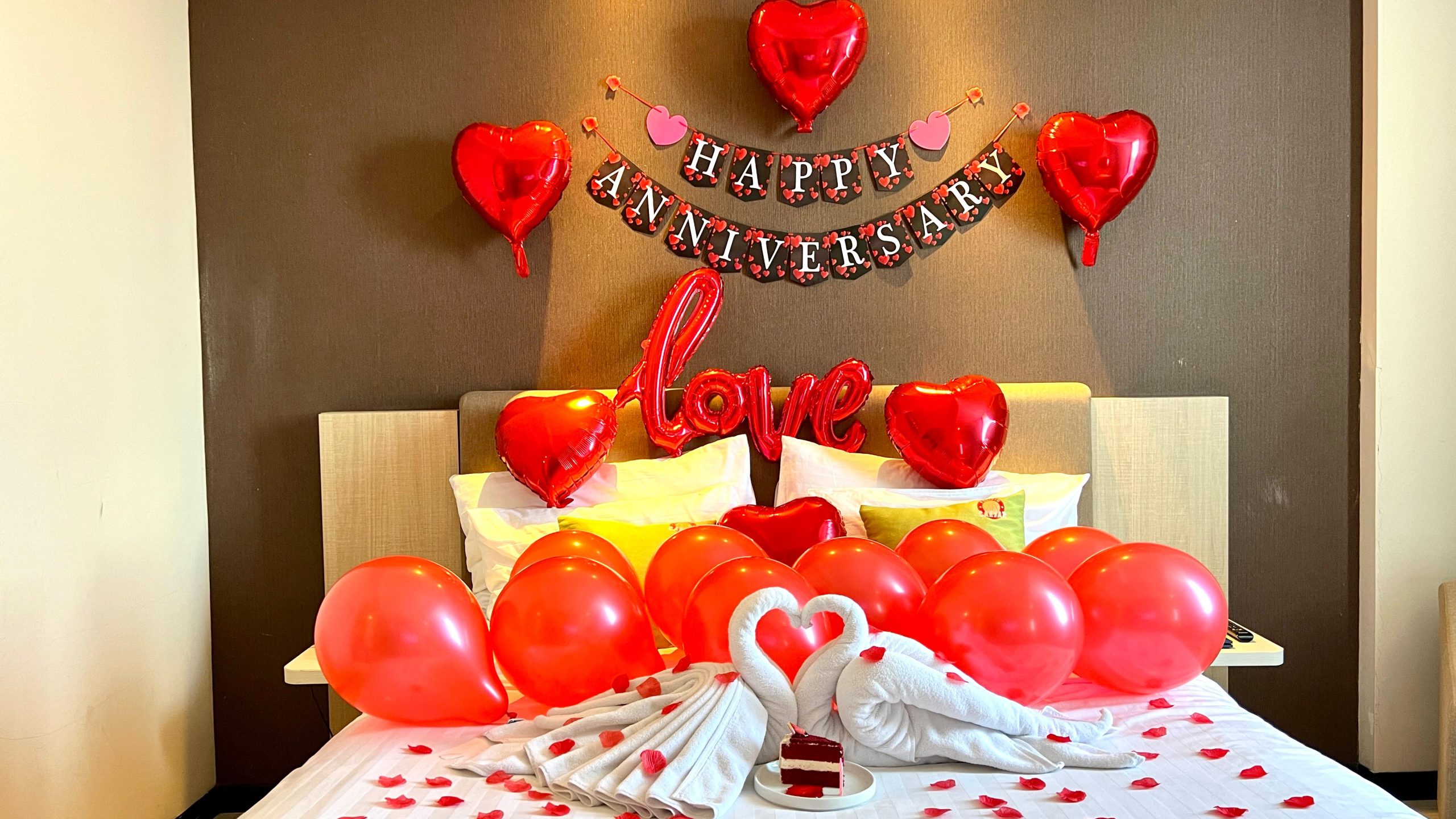 Saat memasuki kamar, tamu akan disambut dengan dekorasi romantis yang sudah disiapkan, seperti: