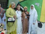 Sejumlah jemaah haji asal Nusa Tenggara Timur (NTT) terlihat tampil dengan baju adat yang penuh warna . SURABAYA,MEMORANDUM – Pemandangan tak biasa