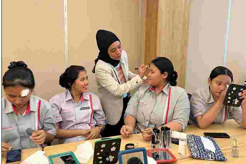 Tidak hanya sebatas teori, para siswa juga mendapatkan praktik langsung dari tim profesional hotel dan dukungan dari salah satu brand makeup terkemuka di Indonesia. Mereka diajarkan mulai dari teknik makeup natural hingga perawatan diri yang sesuai standar industri.