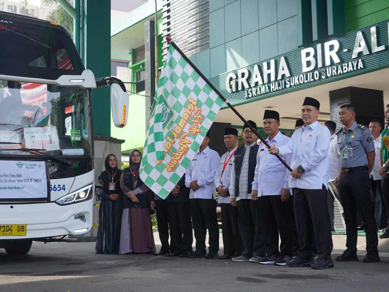 SURABAYA,MEMORANDUM – Wakil Menteri Agama, Saiful Rahmat Dasuki, memberikan semangat dan doa kepada jemaah haji kloter 8 Embarkasi Surabaya yang diberangkatkan pada Senin 13 mei 2024. Dalam kesempatan tersebut, Wamenag berpesan agar para jemaah menjaga kesehatan dan stamina mereka selama berada di tanah suci.